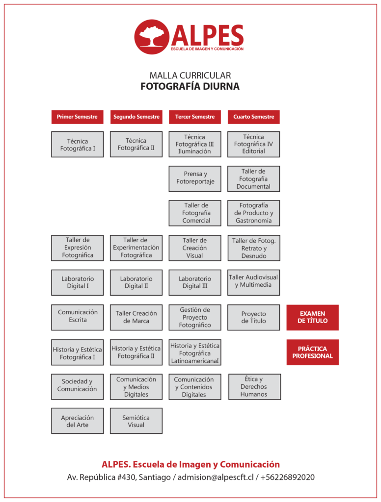 El Fotógrafo formado en ALPES- Escuela de Imagen y de Comunicación, posee las competencias y las habilidades necesarias para generar un discurso fotográfico construido a partir de un sólido manejo